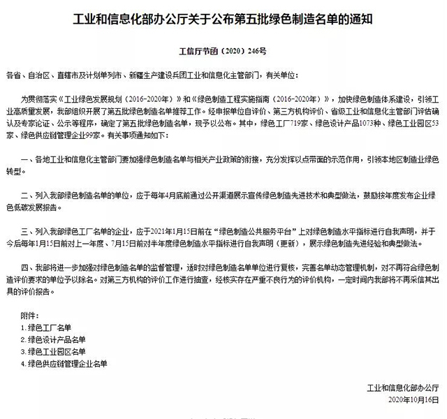 图丨第五批绿色制造名单节选